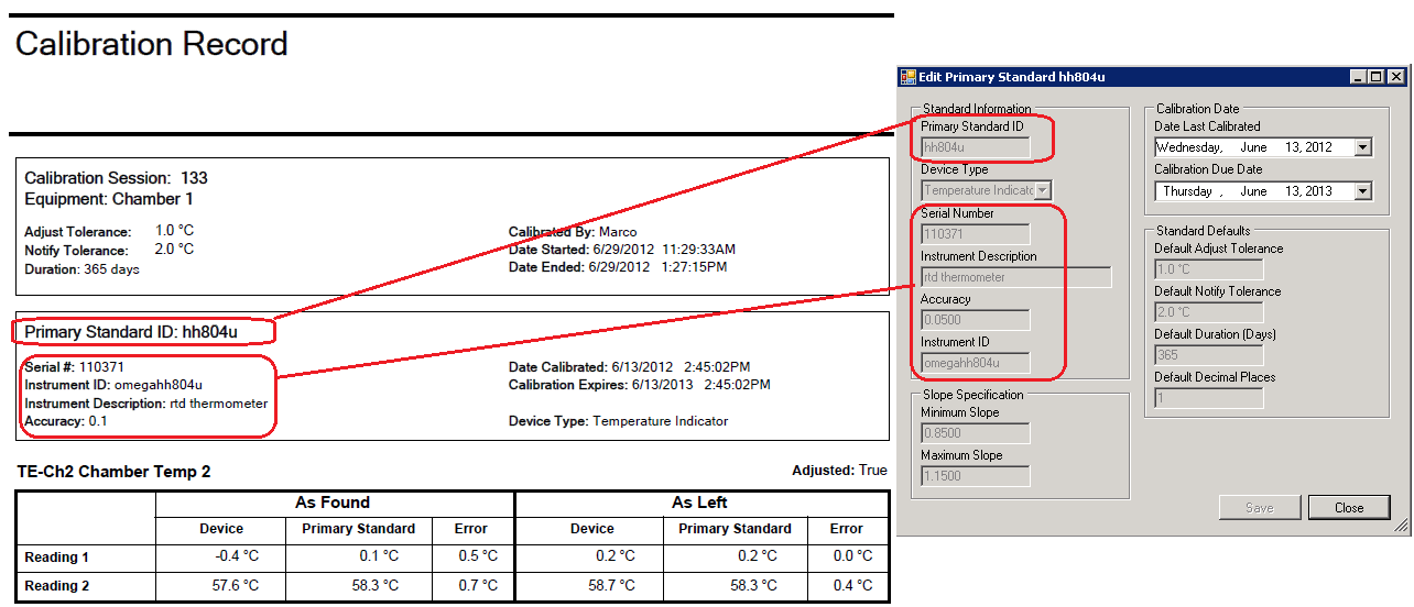 If the Notify Tolerance is higher than the Default set in the Primary Standard a checkmark is placed in the Notify Required field.