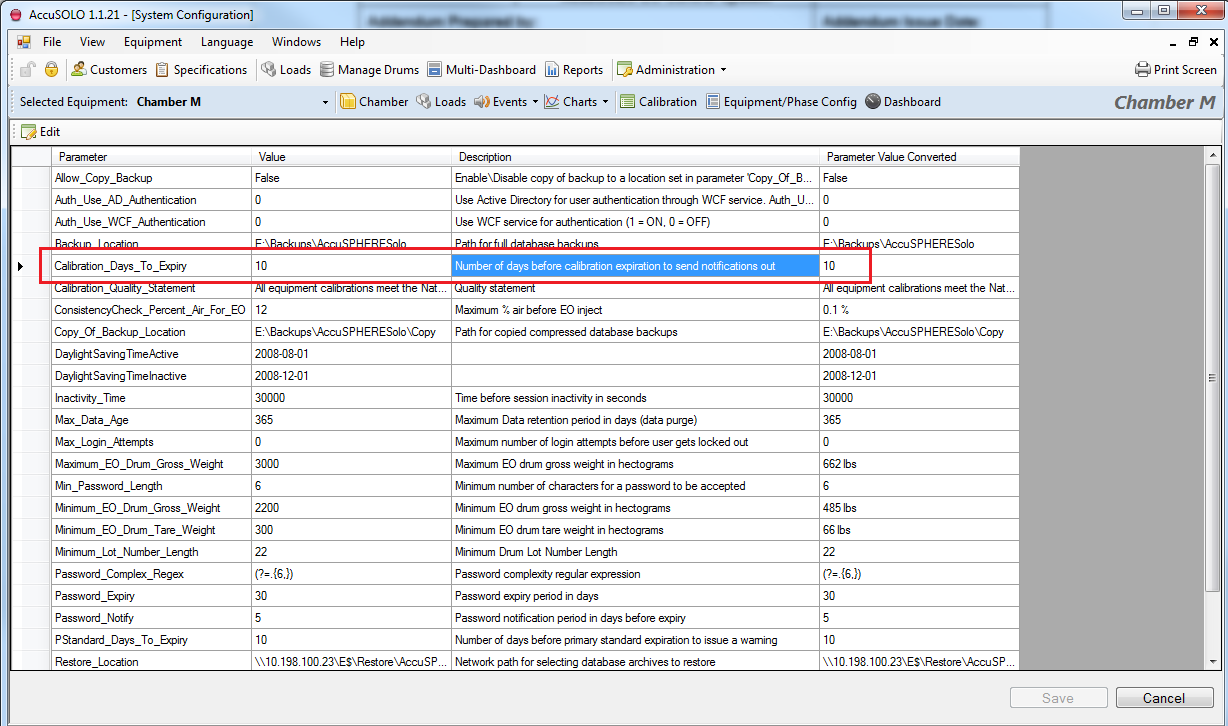 The system can be configured to issue e-mail notifications a number of days before a device calibration is about to expire. This is achieved using the Calibration_Days_To_Expiry system configuration parameter.