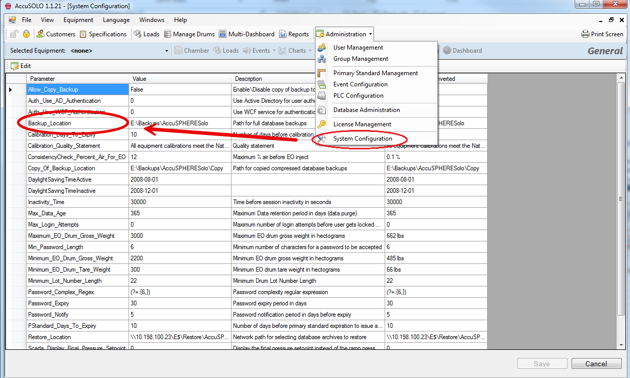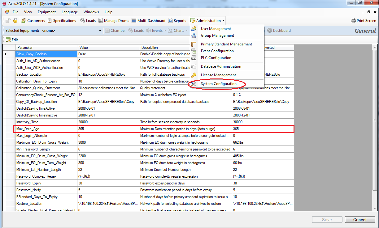 1. Launch the AccuSOLO client and select System Configuration from the Administration drop down menu.