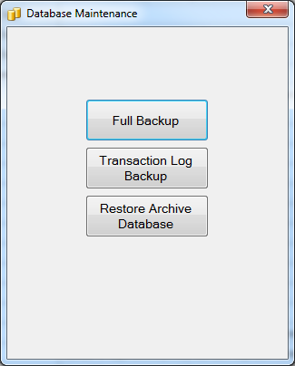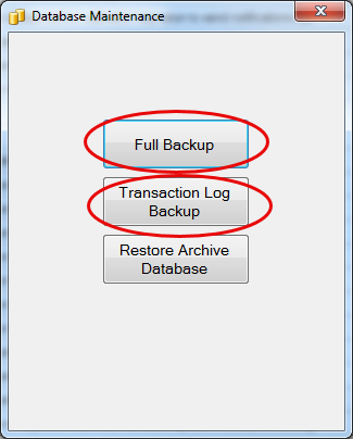 The backups are scheduled by the AccuSOLO software (30 minutes and daily) but you can always manually force a backup to occur by selecting “Database Administration” from the Administration drop-down menu and selecting “Transaction Log Backup” or “Full Backup”.