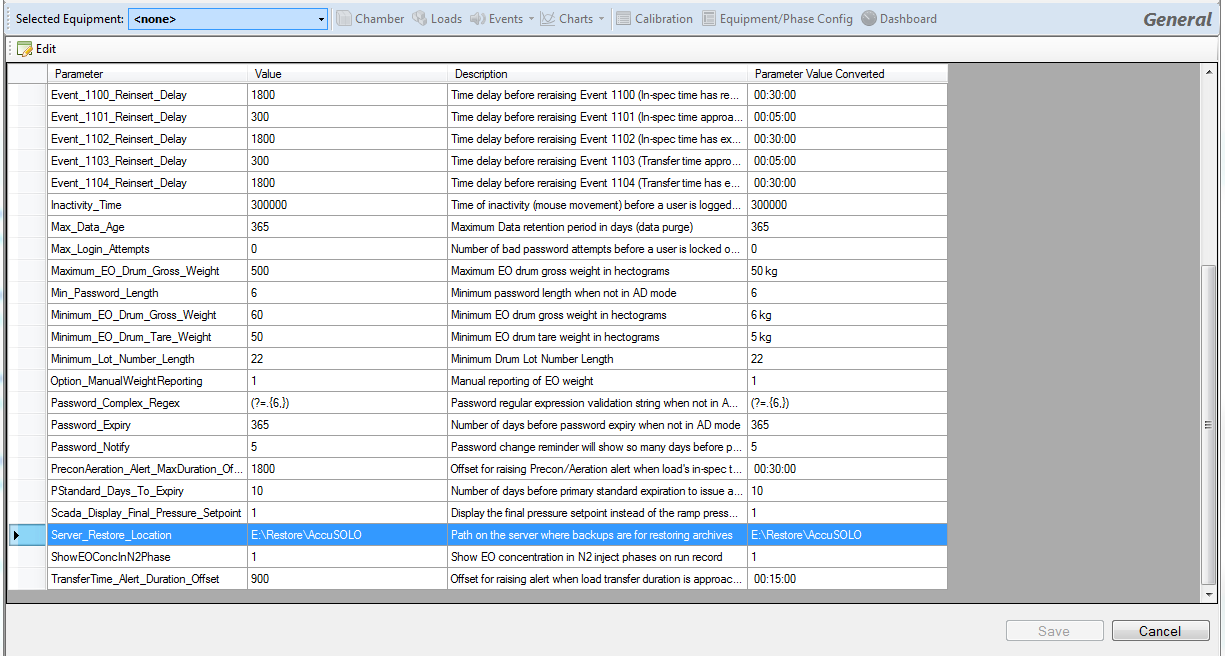2. Copy the database backup you wish to restore into the location defined by the System Configuration parameter “Server_Restore_Location”. This is the path on the server where the backup must be copied in order to restore it.