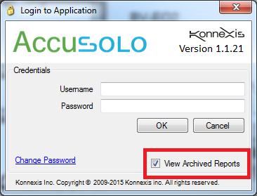 5. Log out and then log back into the application with the “View Archived Reports” check box checked.