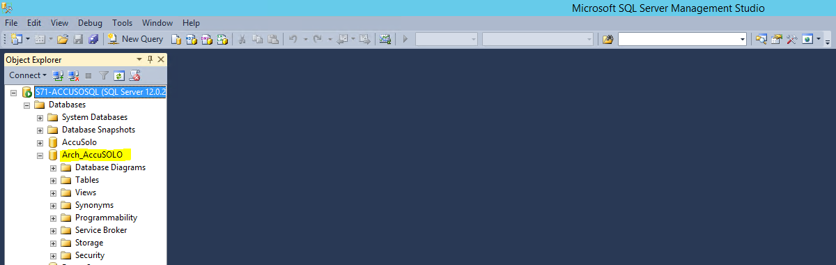 1. Log onto the SQL server on which the AccuSOLO database resides and launch the client